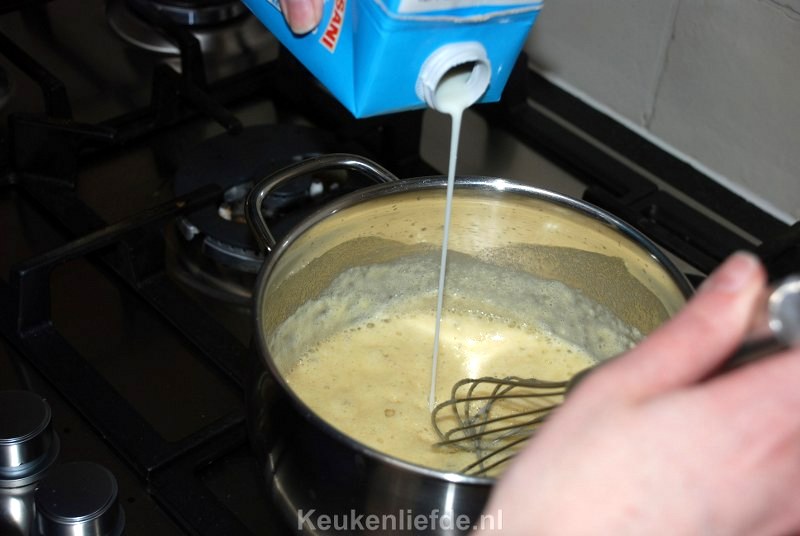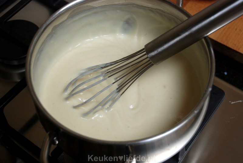 Als je bloem te kort meebakt voordat je de melk toevoegt loop je kans dat de saus straks naar bloem smaakt. Voeg dan beetje bij beetje de melk toe en blijf goed roeren totdat je een mooie gladde saus hebt.