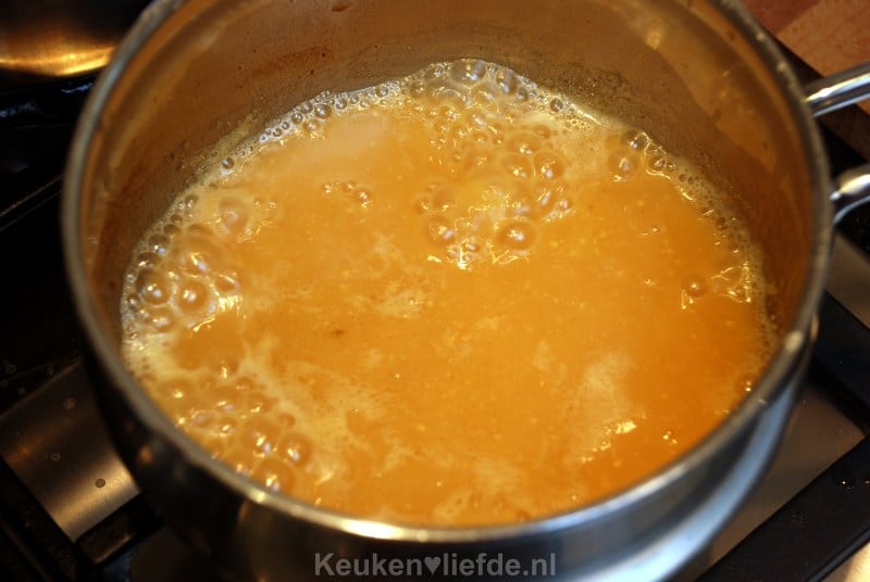 Voeg de slagroom toe en kook nog een minuut zachtjes verder.