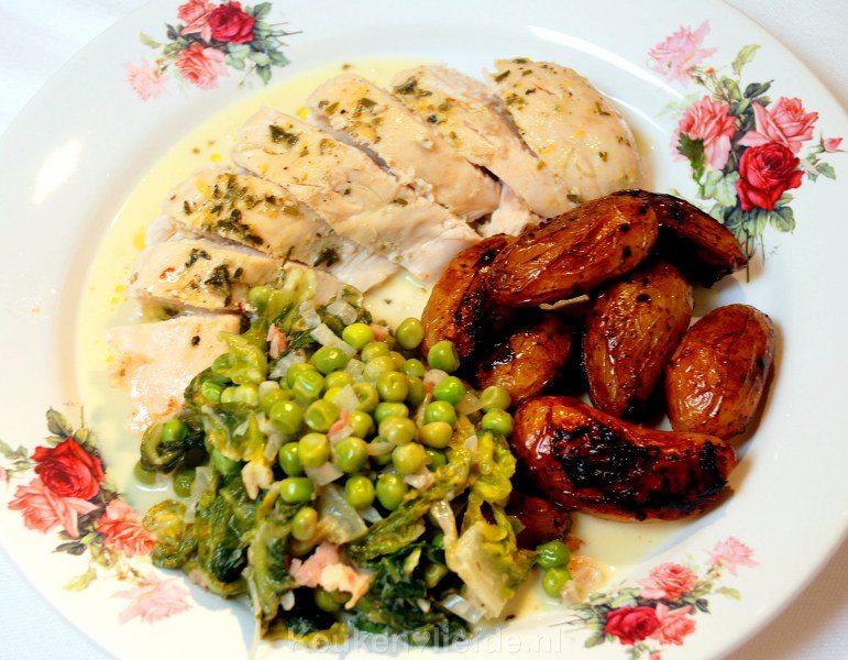 Ik heb een zwak voor klassiekers! Deze doperwten met gestoofde sla, spek en room wordt door de Fransen ook wel Petits Pois a la Française genoemd. Het is een klassiek bijgerecht en tevens mijn absolute favoriet om te serveren bij mijn gebraden kip uit de oven. Ontzettend makkelijk om te maken en lekker!