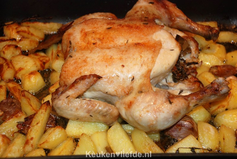 wat een heerlijk kip gerecht! Ik heb zelf 250 ml kipbouillion gebruikt ipv van water voor extra smaak. Mijn kip was mals en krokant, mijn aardapelen hadden een lekker citroen met tijmen smaak. Ik ga het zeker vaker maken! Echt lekker! 🙂