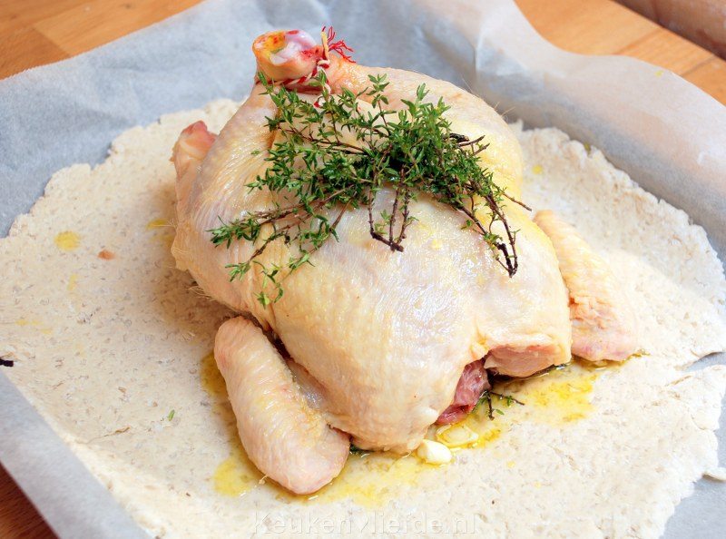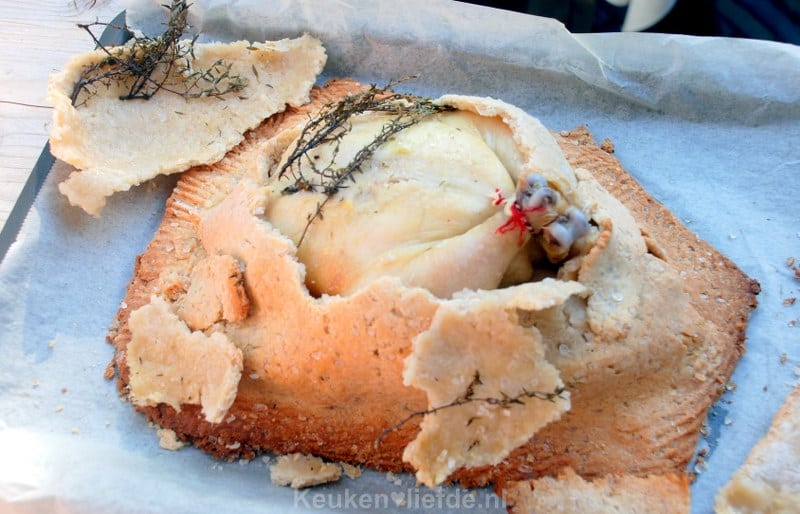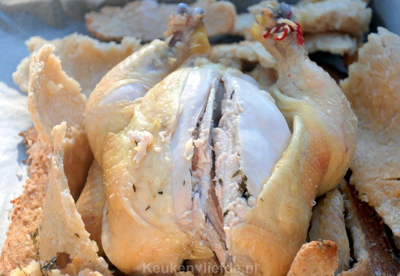 Dit is beslist de meest sappige en malse kip die ik ooit geproefd heb! Het maken van de zoutdeegkorst lijkt misschien ingewikkeld maar is allesbehalve dat. Dit is bovendien een perfect gerecht om aan gasten te serveren, waar je indruk op wilt maken. Zowel de presentatie als de smaak van dit gerecht zijn spectaculair!