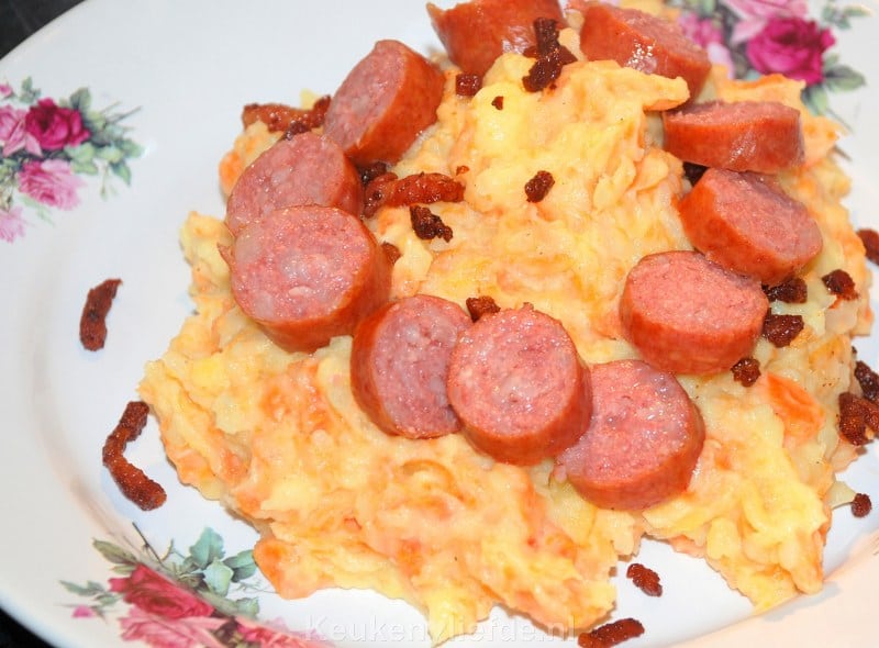 Een lekkere variant maken op dit recept? Probeer ook eens deze hutspot ovenschotel met rookworst. Je kunt hem van tevoren al maken en ’s avonds zo de oven inschuiven.