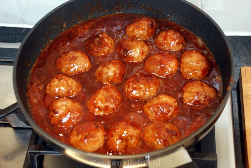 Ketjap gehaktballetjes in zoetzure saus