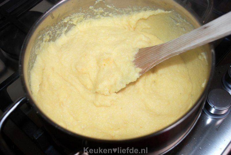 - 2 el bloem om de polenta mee te bestrooien
