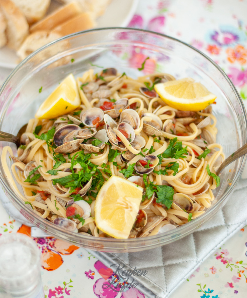 Met weemoed denk ik terug aan deze linguine alle vongole die ik maakte op de camping in Italië. Wat is Italië toch een heerlijk vakantieland. Tijdens een uitstapje naar de plaatselijke supermarkt ontdekte ik de visafdeling waar een zakje verse vongole (ook wel venusschelpen genoemd) op mij lag te wachten. Ik wist direct wat ik daarmee wilde maken: linguine alle vongole! Een eenvoudig en heerlijk gerecht dat in luttele minuten op tafel staat.