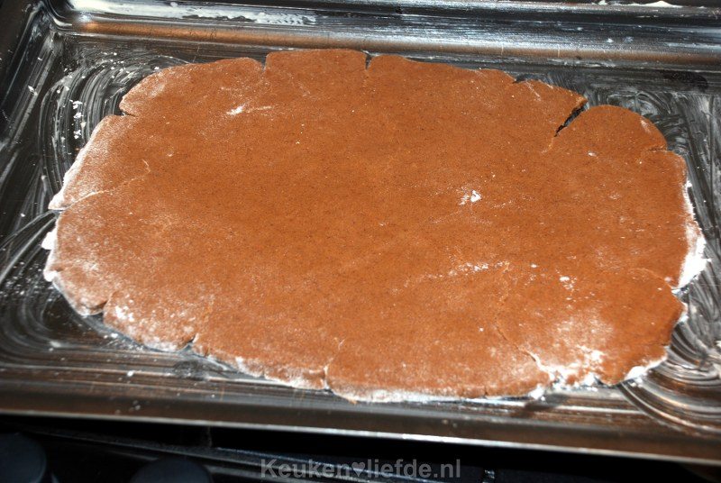 Til de lap voorzichtig op het, met bakpapier beklede, bakblik (een scheurtje hier en daar is niet erg, je breekt ze straks immers toch in robuuste brokken) 🙂 en bak in circa 30 minuten gaar (het deeg is nog iets zacht als je het uit de oven haalt, maar wordt vanzelf hardt als het afkoelt). Laat de Speculaas afkoelen en breek dan in grove stukken.
