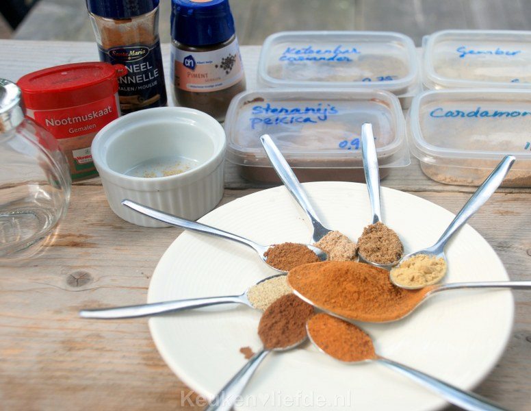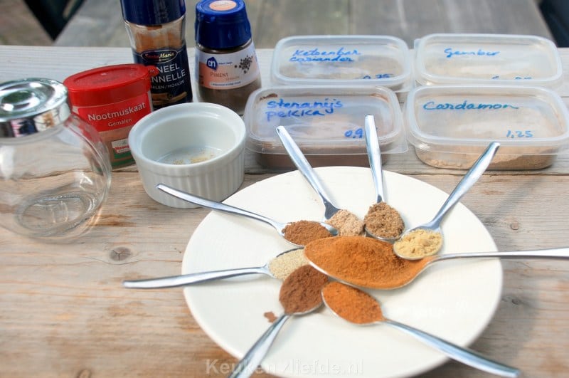Je kunt speculaaskruiden of koekkruiden natuurlijk in de winkel kopen, maar omdat ik alle benodigde specerijen hiervoor toch altijd in huis heb, maak ik ze gewoon zelf. Veel goedkoper en minstens zo lekker! Je gebruikt de speculaaskruiden bijvoorbeeld voor deze peren-speculaastaart, zelfgemaakte speculaasbrokken, of natuurlijk voor pepernoten!