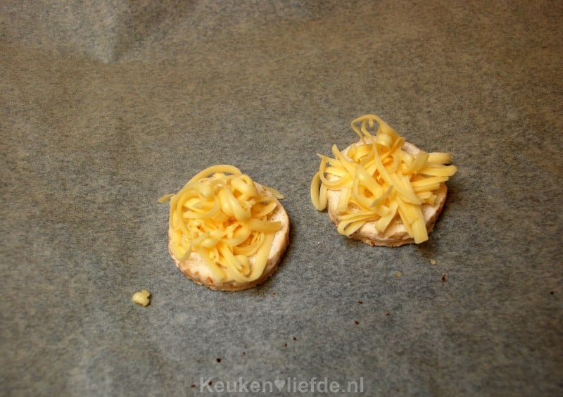 Verwarm de ovengrill en bestrooi het stokbrood met de kaas.