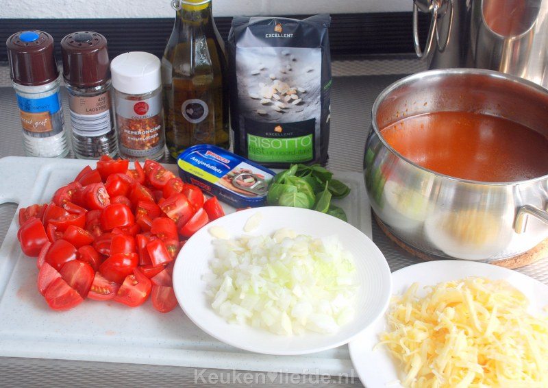 Hoewel er inmiddels vele favoriete gerechten zijn in ons gezin, komen deze toch niet heel regelmatig bij ons terug op tafel. Met een kookblog waarop iedere dag een nieuw recept verschijnt, is dat nu eenmaal lastig. Voor deze hartverwarmende tomatenrisotto maak ik echter graag een uitzondering. Het is makkelijk om te maken en iedereen is er dol op! Gebruik de meest smaakvolle tomaten en allerbeste kippenbouillon die je maar kunt vinden; deze bepalen voor een groot deel de smaak van dit gerecht.