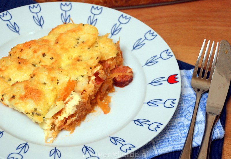 5. Zuurkoolovenschotel met rookworst