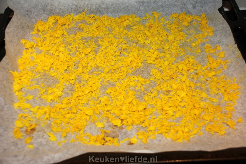 De rijst met wat saffraan gaar koken en daarna een paar uur drogen in de oven op 50 graden.