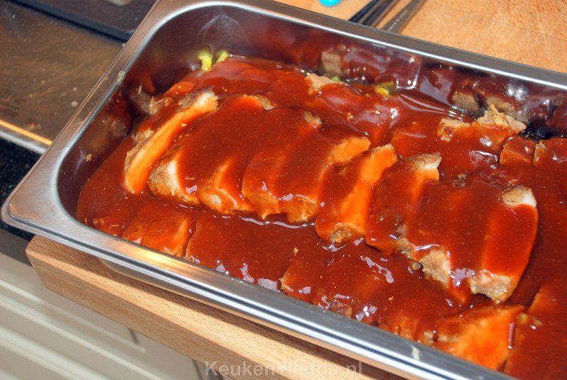 Ik had nog zelfgemaakte saus in de vriezer en heb daarom alleen het recept van het vlees gebruikt.