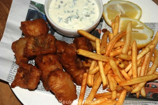 Vanavond gegeten, echt heerlijk! Wel even kijken hoe heet de temperatuur van de olie moet zijn. (getest met een stukje wit brood, als het gelijk gaat bubbelen en bruin wordt, dan is het goed) Ook de kruiden was even gokken. Ik heb wat viskruiden over de vis gedaan en in het beslag. Kortom heerlijk!! Echt een aanrader en hier vonden ze het nog veel lekkerder dan bij de viskraam! 🙂