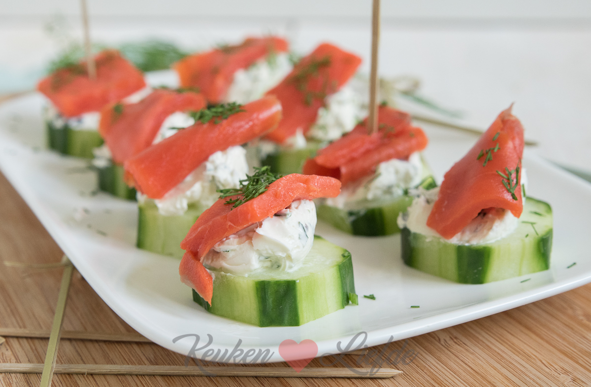 3. Komkommerhapje met zalm en roomkaas