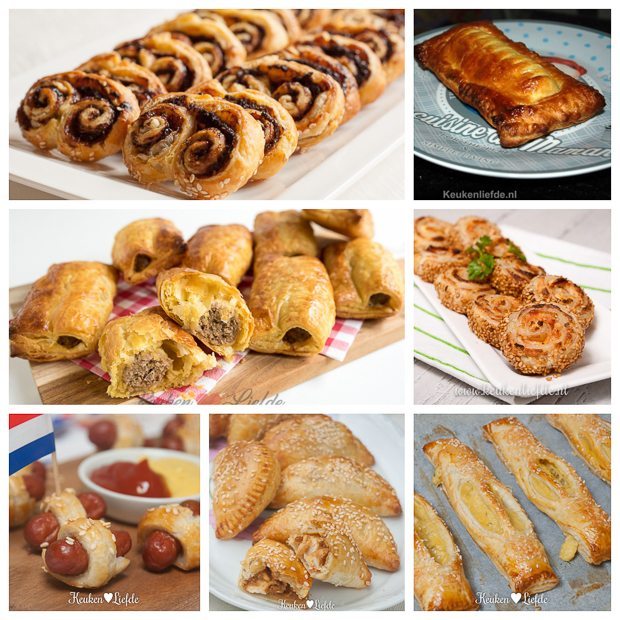 Hartige hapjes met bladerdeeg, daar mag je me ’s nachts voor wakker maken. Ik serveer ze graag bij de borrel, of op een verjaardag. Ze zijn op voordat je het weet! Vandaag zet ik 7 van mijn persoonlijke favorieten op een rij. Welke kies jij?