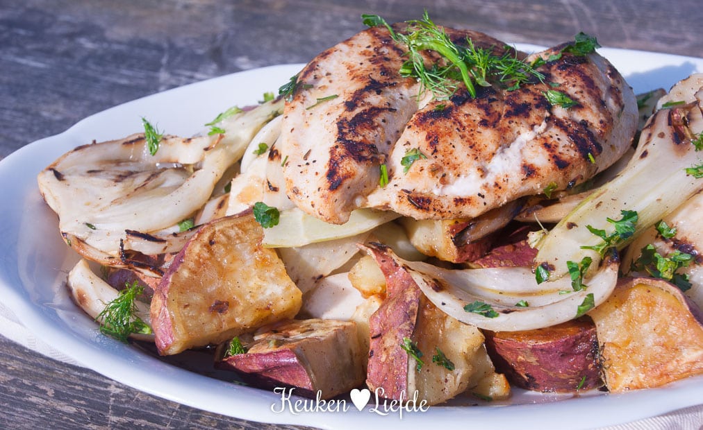 2. Gekruide kipdrumsticks met groenten uit de oven