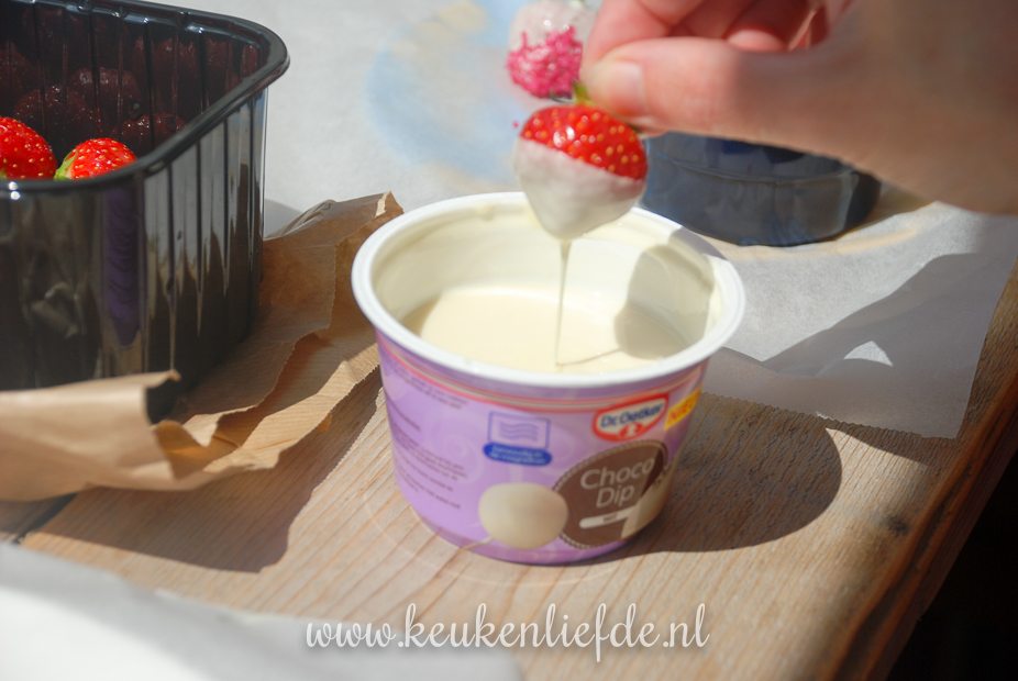• Bakje witte Choco Dip van Dr. Oetker, of zelf een (grote!) reep witte chocolade smelten*