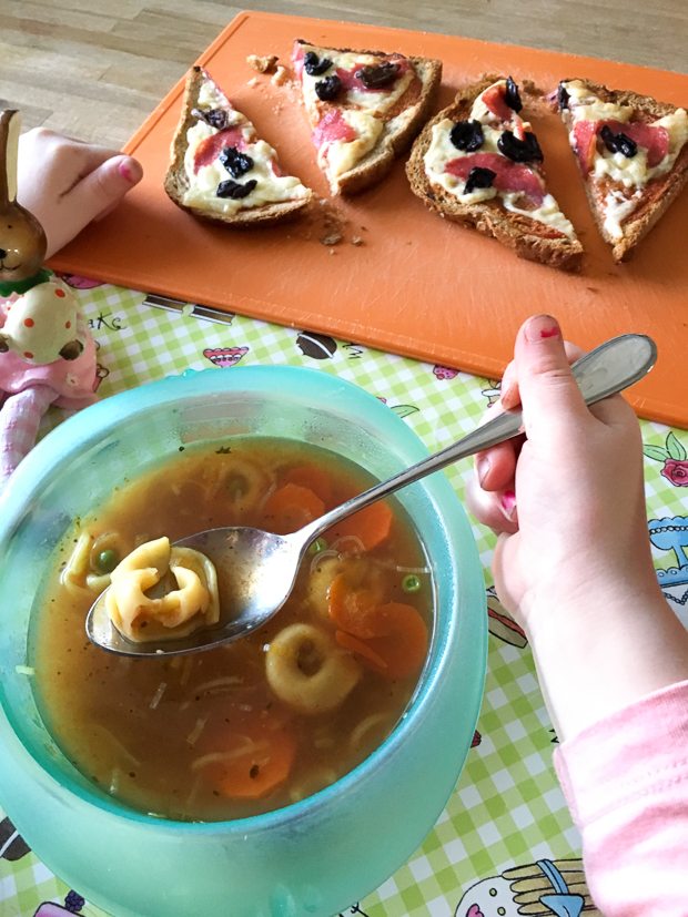 s’ Avonds eten we de overgebleven tortellinisoep en wat broodsnackjes uit de oven.