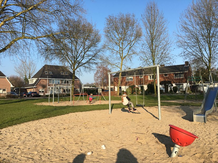We wandelen ’s middags naar de supermarkt om wat boodschappen te doen en genieten van het mooie weer. Op de terugweg mag El zich even uitleven in de speeltuin.