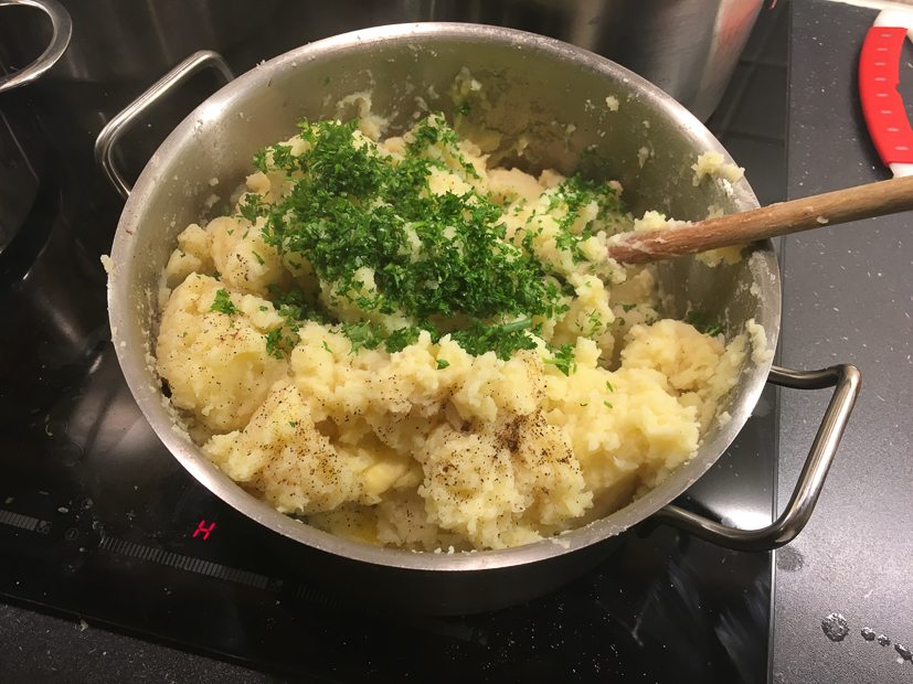 Als Johan ’s avonds thuiskomt uit zijn werk, rijden we direct door naar mijn ouders. Mijn moeder heeft zichzelf overtroffen en heeft alles uit de kast getrokken voor het verjaardagsdiner. Het hoofdgerecht bestaat uit knolselderij-aardappelpuree, sperziebonen, rodekool, beenham en stoofvlees.
