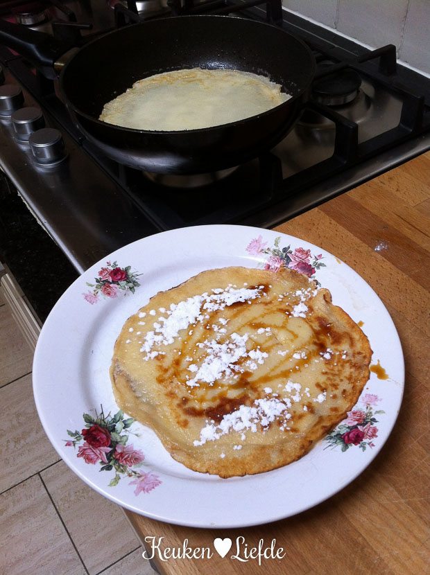 Tussen de middag hebben Ella-Marie en ik zin in pannenkoeken en niet veel later zitten twee smulpaapjes heerlijk te genieten.