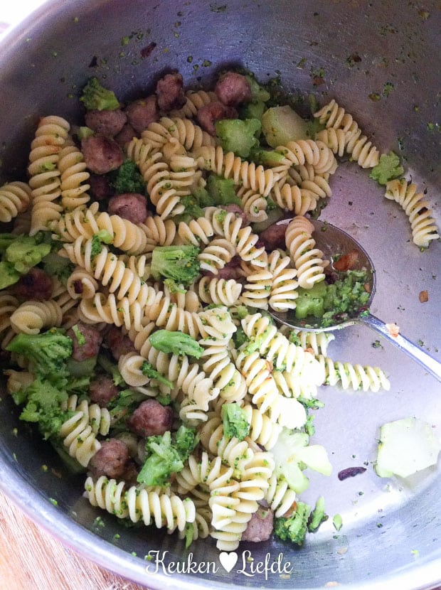 Voor het avondeten maak ik een Speels & Smakelijk kinderrecept: pasta met broccoli en saucijsballetjes. Wauw, wat een topper! Deze gaat direct op onze favorietenlijst. Het recept komt volgende week woensdag online.
