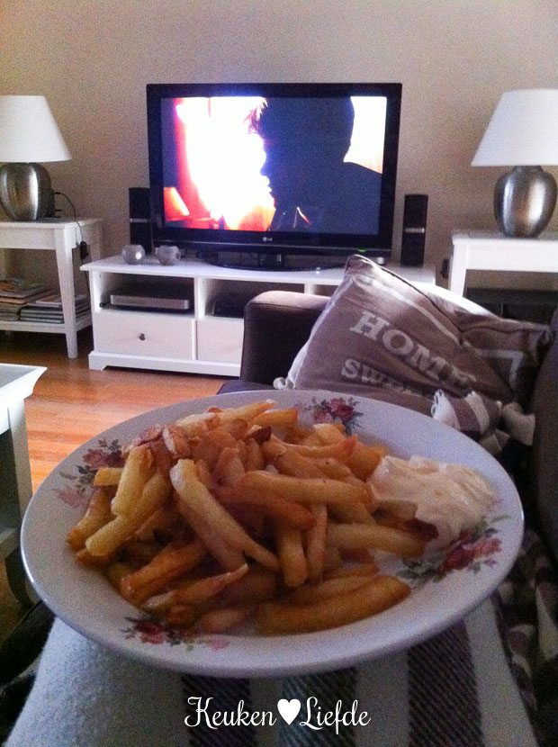 Donderdag ben ik de hele dag aan het schrijven en kook ik niet. Ik heb geen idee meer wat we ’s avonds hebben gegeten, want ik vergeet foto’s te maken. Blijkbaar was het niet vullend genoeg voor mij en Johan, want als El op bed ligt gooien we de frituurpan aan en kijken — met een bord zelfgemaakte friet (die nog in de diepvries lag) op onze schoot — naar The Talented Mr. Ripley. Ik had hem al eerder gezien, maar wat een goede film!
