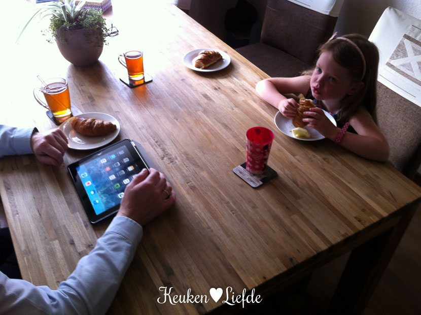 Johan vertrekt vandaag iets later en dus kunnen we gezellig met z’n allen ontbijten. Dat doen we overigens meestal in het weekend hoor: ontbijten met croissants.
