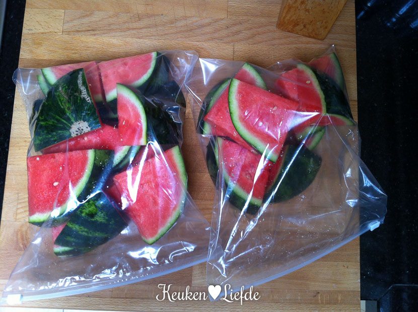 Als Ella-Marie op school zit, ga ik boodschappen doen. Ik heb een flink boodschappenbriefje en ben om half elf pas weer thuis. Ik heb weer watermeloen gekocht (onze laatste verslaving!) die ik in hapklare stukken snijd en in diepvrieszakken in de koelkast bewaar. Ideaal voor snelle snacktrek!