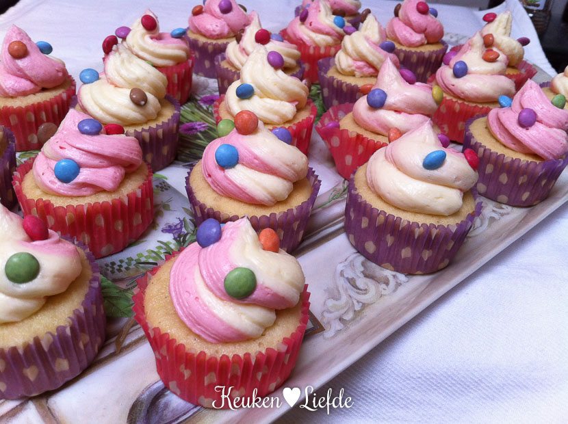 Ik heb met de juf van Ella-Marie afgesproken dat ik de cupcakes om tien uur op school breng. Ik heb dus alle tijd om ze thuis te versieren. Ondanks het koude weer en de regen van vandaag word ik helemaal warm en vrolijk van deze kindertraktatie. Het recept voor deze cupcakes mét vanille-botercrème, deel ik uiteraard snel met je!