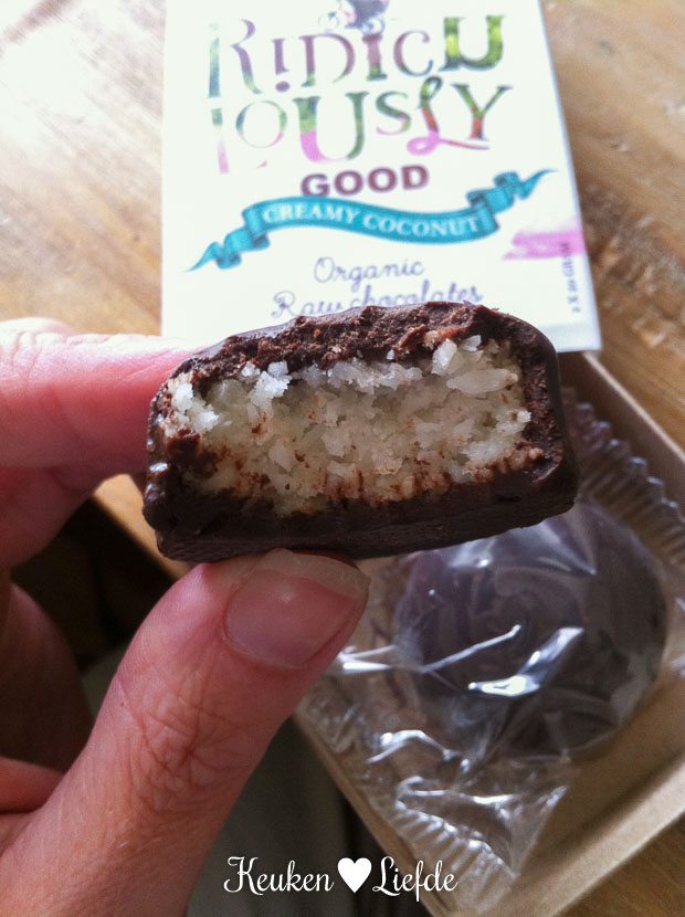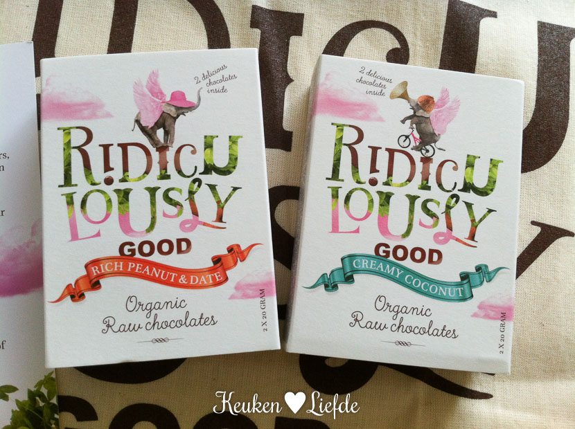 Ik krijg een goodiebag thuisbezorgd van Ridiculously Good. Deze schattige chocolaatjes zijn gemaakt van rauwe chocolade en verkrijgbaar in de smaken Rich Peanut & Date en Creamy Coconut. De vullingen zijn suikervrij en gemaakt van biologische en fair trade verkregen ingrediënten. De smaak is top! Hoewel ik eigenlijk helemaal niet zo van pure chocolade hou, vind ik deze rauwe chocolade echt heel erg lekker. De smaak is zacht, romig en heeft geen bittere smaak, zoals gewone pure chocolade vaak wel heeft. Ik ben echt fan! Bovendien zijn de chocolaatjes per twee stuks verpakt in schattige — soort van lucifer — doosjes. Superleuk om bijvoorbeeld iemand cadeau te geven.
