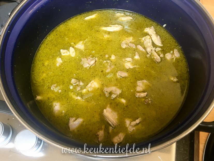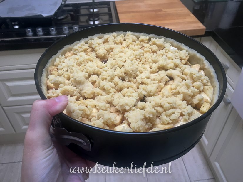 Ik bak appelkruimeltaart en maak risotto met pesto, kippendijen en spinazie.