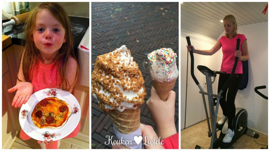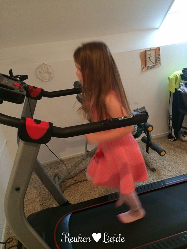 Het is vandaag weer tijd om te sporten. Omdat het ’s avonds aan één stuk door regent — bah! —, besluiten we de sportschool van Johan zijn ouders in gebruik te nemen — lees: hun zolder met fitnessapparatuur. 🙂 Scheelt ons weer een abonnementje. Kijk die kleine gaan!