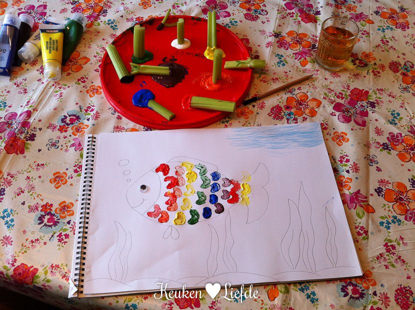 ’s Middags houden El en ik een knutselsessie. Waar bleekselderij al niet goed voor is!
