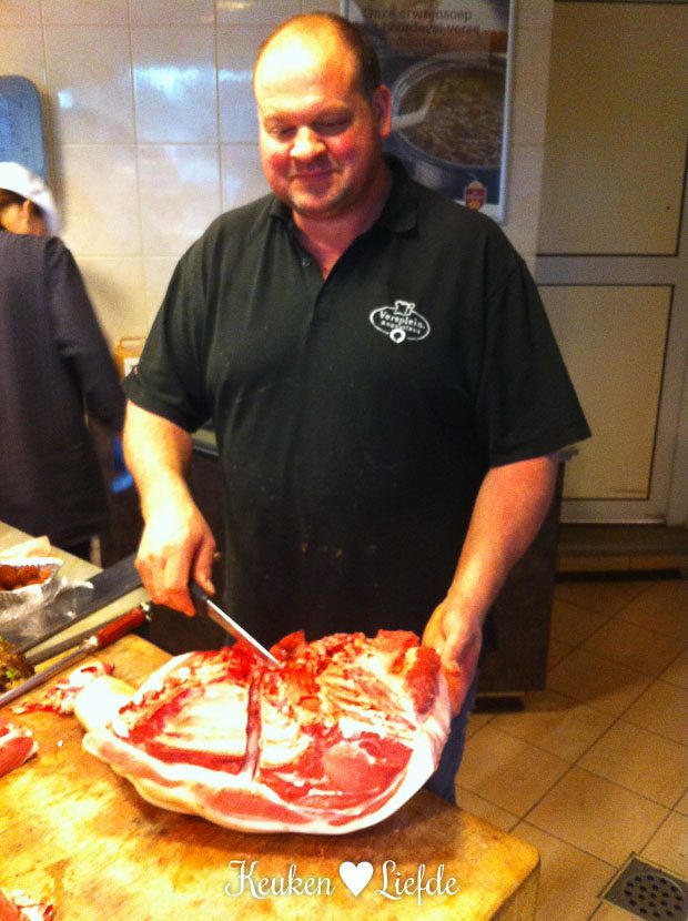 Ik breng een bezoekje aan de slager, want ik heb een stukje vlees besteld. De slager roept me achter de toonbank en laat me zien wat voor vlees ik in de kuip heb: een varkensschouder met bot van vierenhalve kilo. Wat ik hiermee ga maken, hou ik nog even als verrassing. Wordt binnenkort vervolgd …