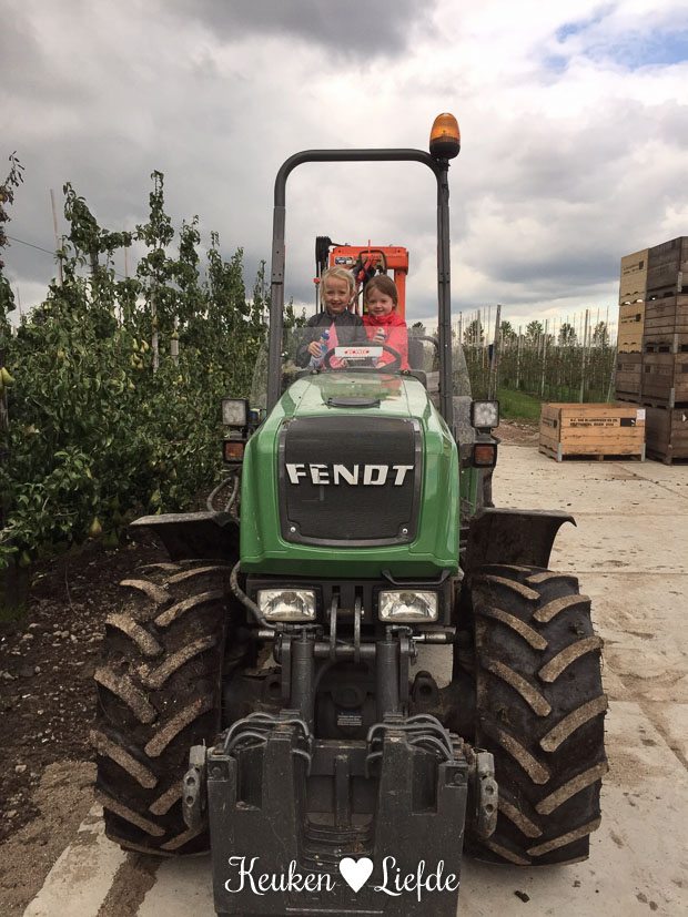 El krijgt een zak vol appels en peren mee! Mmmm … Daar kan ik vast iets lekkers mee maken.