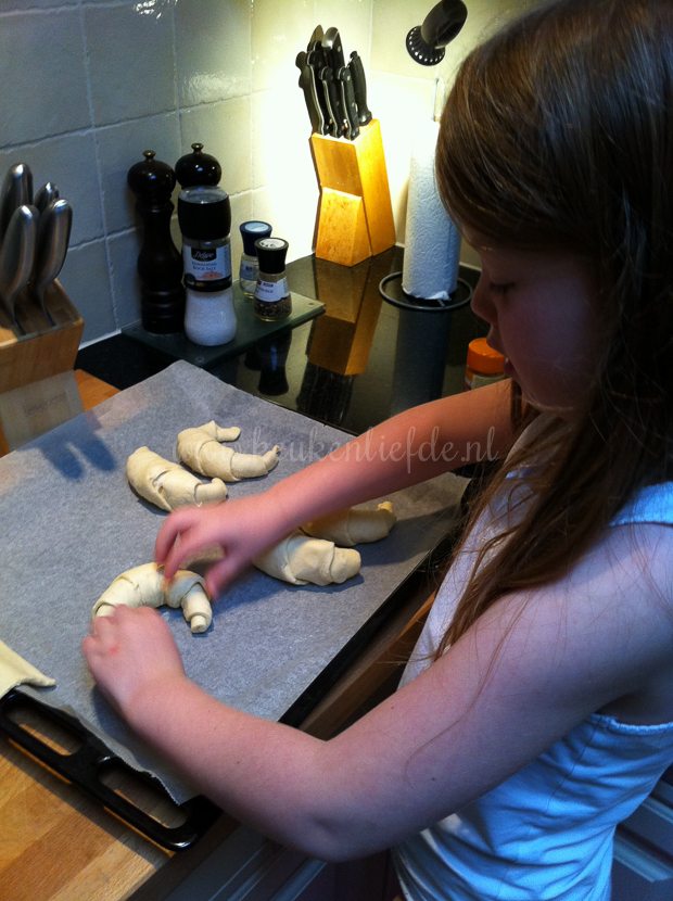 Ella-Marie verzorgt het ontbijt en rolt de croissants.