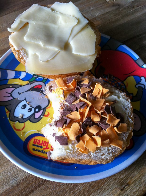 Ik ontbijt graag met een taartje, maar hier word ik misschien nóg wel blijer van: lekker brood besmeerd met roomboter en kaas. Mmmm…