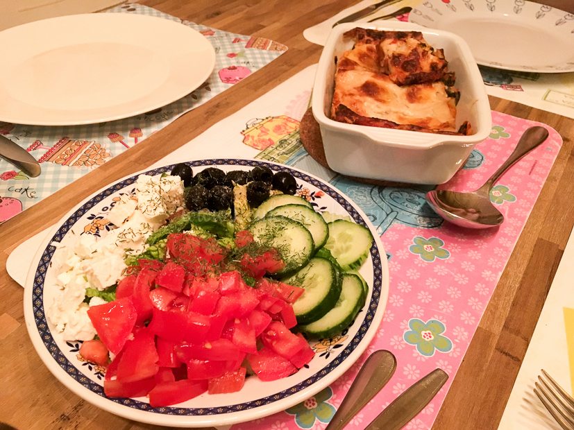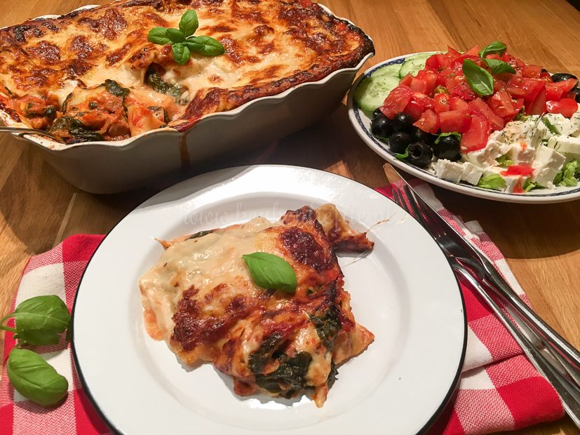 Hier had ik al tijden zin in en vandaag was de dag. Ik maak kiplasagne met spinazie en bechamelsaus. Johan verzorgd de salade. Wat een teamwork.