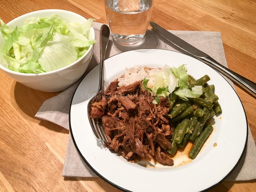 ’s Avonds eten we een restje van de pulled pork, sajoerboontjes 2.0 en gekookte rijst. Het recept ga ik binnenkort met je delen!