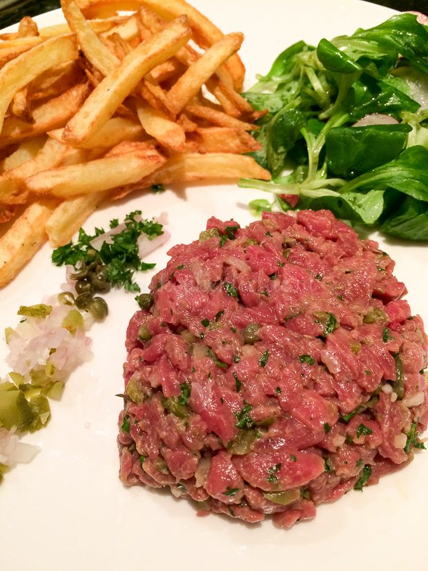 Ik werk even achter de computer, maar belandt al snel op bed. Johan biedt ’s avonds aan om eten te koken en maakt zijn favoriete weekendmaaltje: zelfgemaakte steak tartare en frieten. Ondanks dat ik niet fit ben, smaakt het me uitstekend!