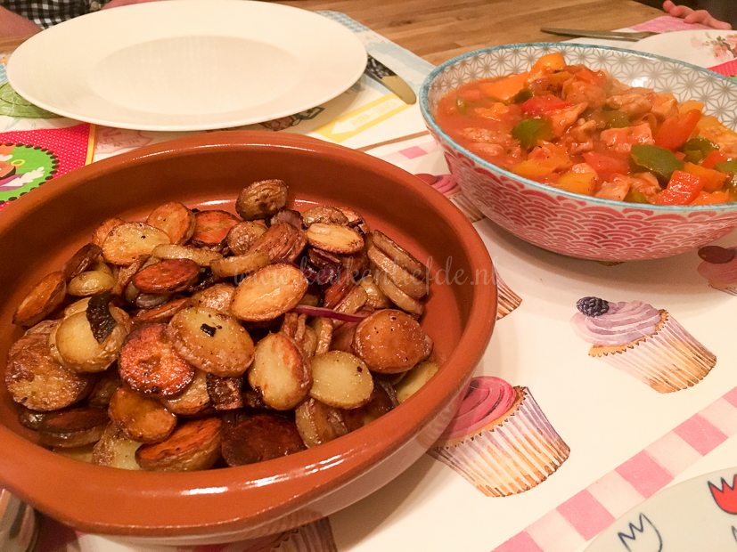 Vanavond vieren we pakjesavond bij mijn ouders thuis. Het leek mij en mijn moeder leuk om een warm en koud buffet te maken. Mijn moeder maakt het koude gedeelte, ik het warme gedeelte. Ik maak ’s middags thuis nasi goreng, ajam ketjap (gemaakt met kippendijen) en sajoer boontjes. Ik maak dit altijd buiten in een elektrische multipan. Daar kan lekker veel in en het gaat binnen niet zo stinken. Mijn moeder heeft twee grote saladeschotels, gehaktballetjes en knolselderijsalade gemaakt. Verder zet ze nog een kaasplankje, stokbrood, vers fruit, kruidenboter, olijven, honing en walnoten op talel. Wat een feestmaal hè!