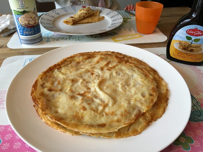 Tussen de middag bak ik pannenkoeken voor Ella-Marie.