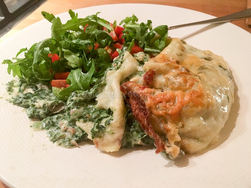’s Avonds eten we de overige pannenkoeken met spinazievulling. Yeah!