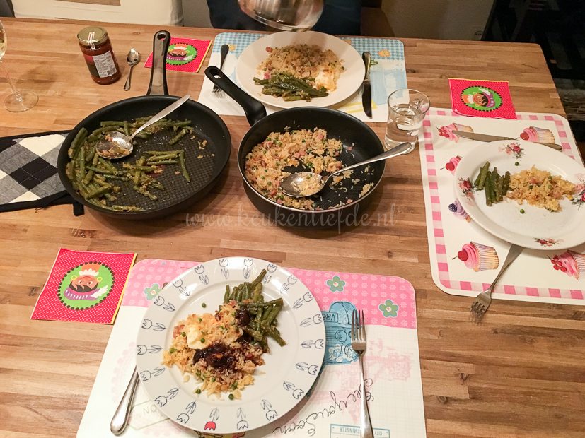 ’s Avonds warm ik kliekjes op die over zijn van de zelfgemaakte rijsttafel.
