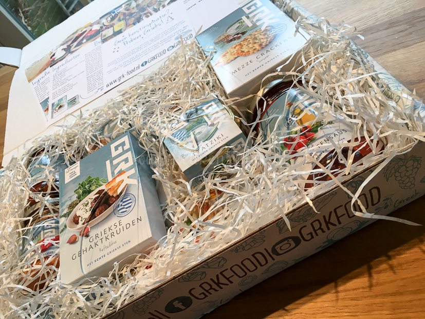 De postbode brengt een pakketje van GRK. Het assortiment bestaat uit 11 Griekse producten die te koop zijn bij Jumbo. Binnenkort maar eens proberen.
