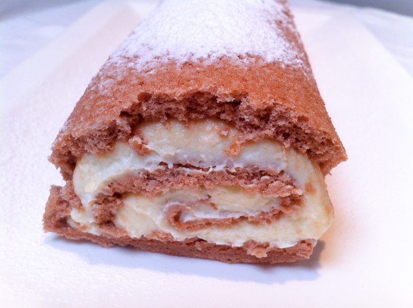 Ik maak een chocolade-biscuitrol gevuld met roomkaas, maar na twee pogingen ben ik nog steeds niet tevreden. Het recept ga ik dus nog niet met je delen. Eerst finetunen. Vorig jaar kerst maakte ik deze biscuitrol met kersen. Wel met succes!