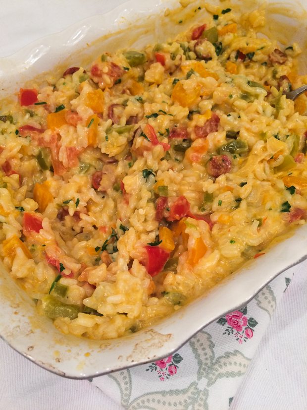 Vandaag is het koken met kliekjes. Ik heb nog paprika en chorizo over na het maken van de kerstboompizza en met een restje risotto erbij die ik vind in de kelderkast onstaat er een idee: paprikarisotto met chorizo! Potjandikkie, wat is -ie lekker! Ik bereid de risotto weer in de oven. Zo lekker makkelijk!