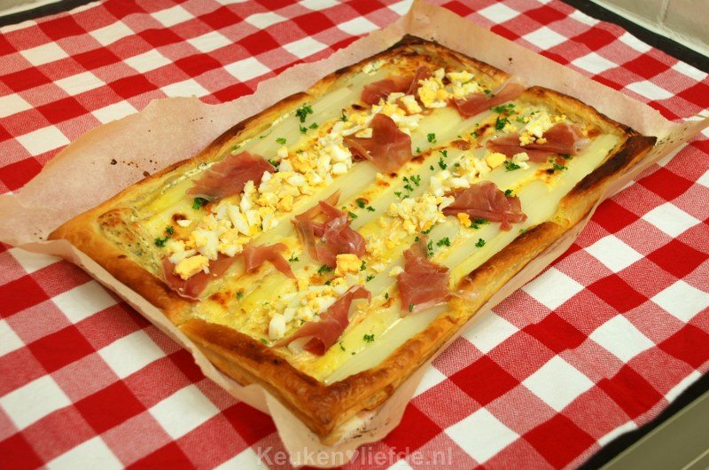Eindelijk kunnen we weer volop genieten van heerlijke witte asperges en dat doen we dan ook! Door de zachte smaak van witte asperges kun je er alle kanten mee op. Deze snel te maken aspergetaart met romige brie, honing en prosciutto behoort tot één van mijn favoriete asperge gerechten!