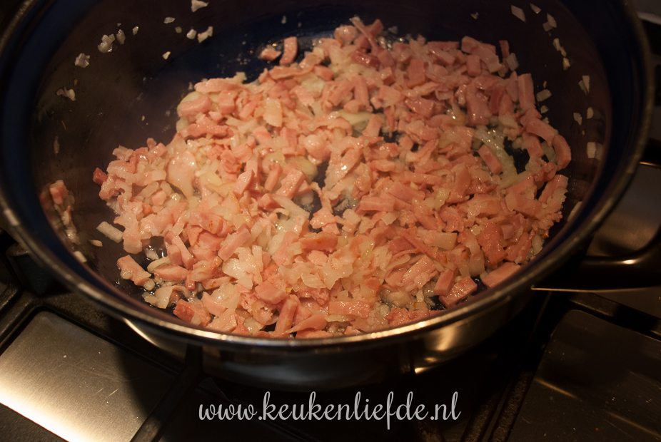- 6 plakjes ontbijtspek, in smalle repen gesneden